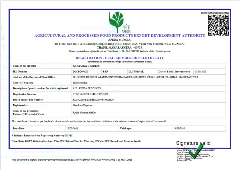 We provide multiple ways for buyers abroad to verify and connect with us easily and securely. Connect with RK Global Traders for premium product sourcing. We're ready to discuss your requirements, provide quotes, and support your global supply needs.